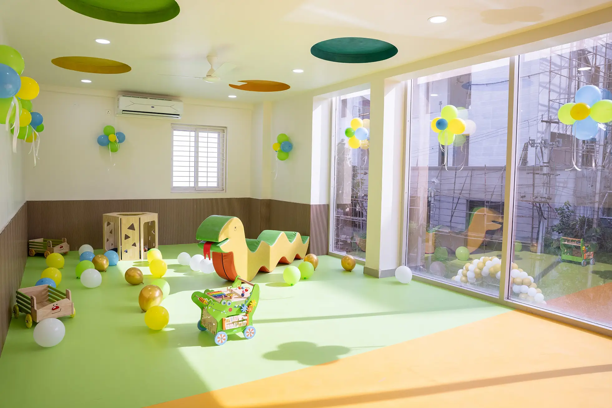 Absolutely. The campus has CCTV surveillance, trained staff, controlled entry and child-friendly spaces.